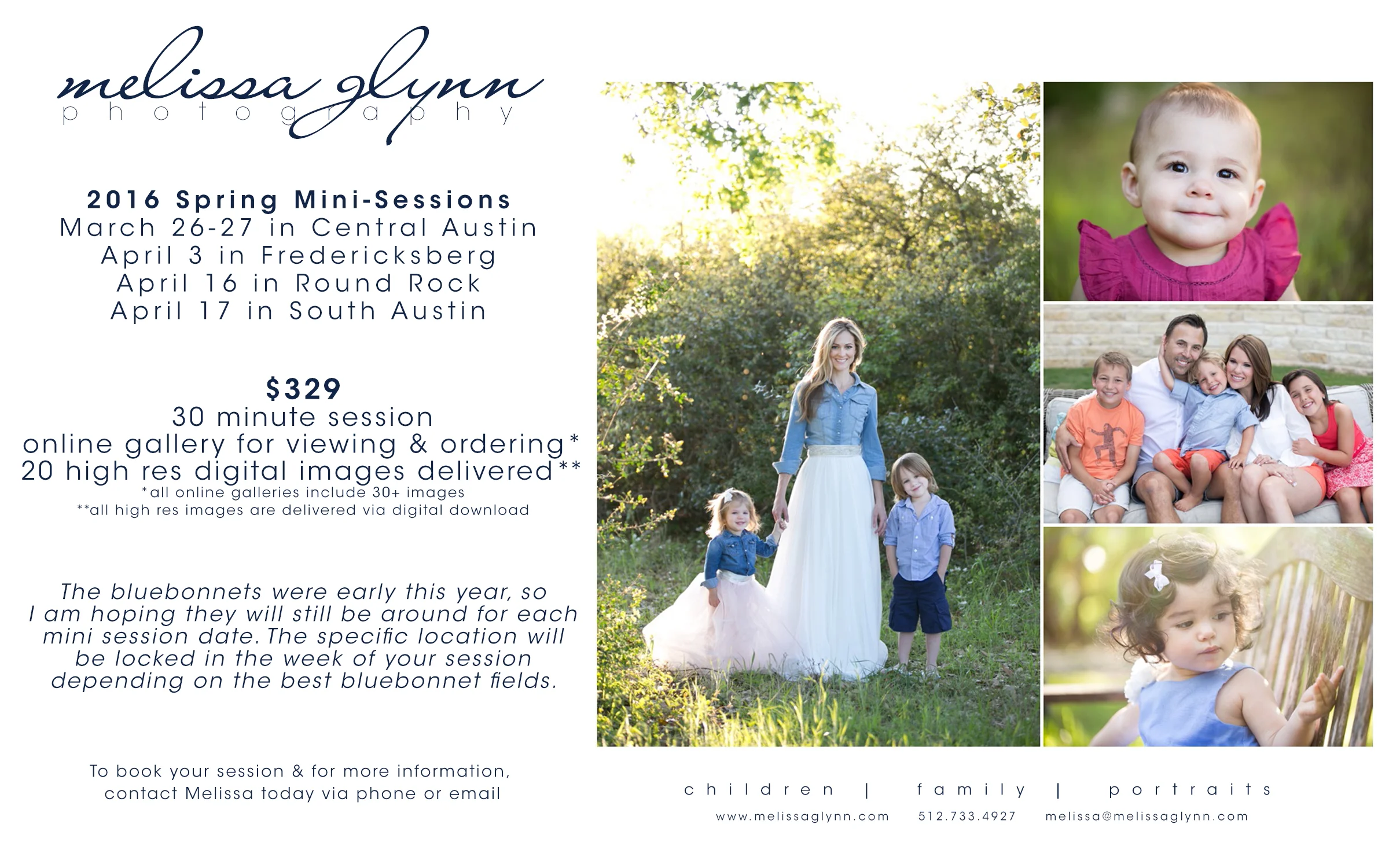 Click HERE to email Melissa to book your session!  Email me at melissa@melissaglynn.com or call at 512.733.4927.